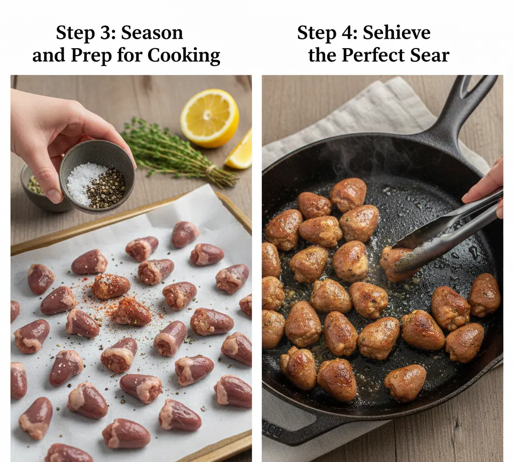 Pro Tip: Well-dried hearts will develop that coveted golden-brown crust that adds textural contrast and concentrated flavor.