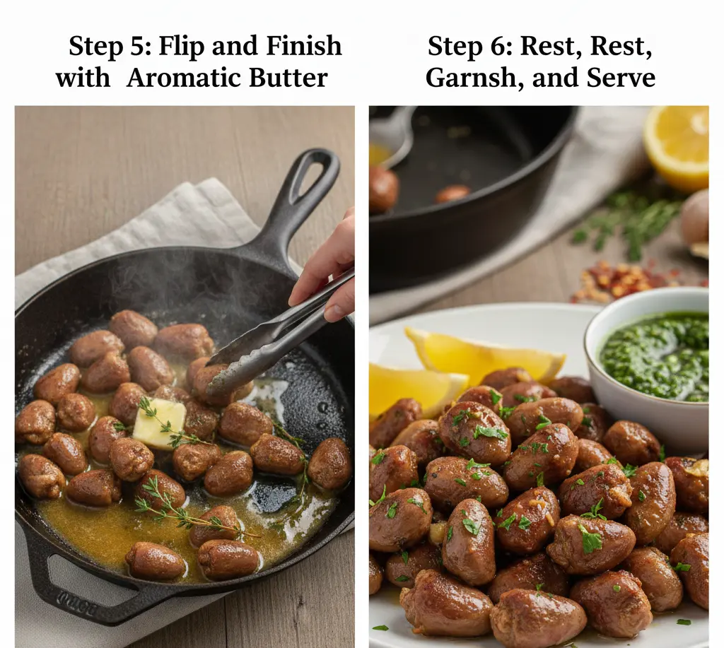 Flavor Maximization: The butter not only adds richness but also helps the pan sauce emulsify with the marinade remnants, creating a cohesive coating that clings to each heart.