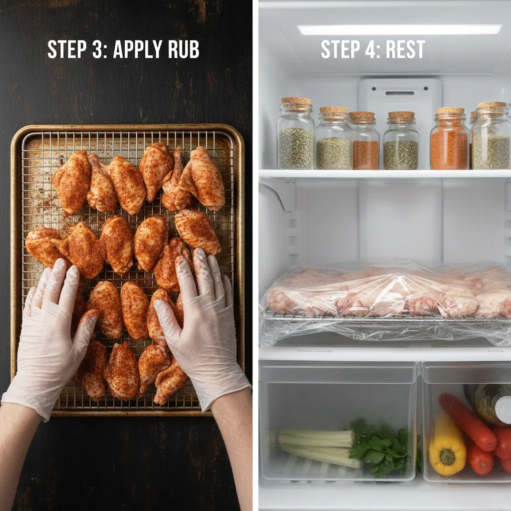 Pro Timing Tip: The magic happens during the resting period. When you apply your homemade wing seasoning blend and allow it to rest (ideally refrigerated for 2-24 hours), the salt in the mixture draws moisture from the wings through osmosis, which then dissolves the spices and carries them deep into the meat. This process, called dry brining, creates restaurant-quality flavor that penetrates beyond the surface.