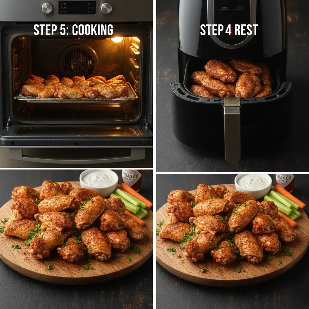 Context: This timeline represents approximately 20% less active cooking time compared to traditional marinated wing recipes, which often require multiple steps of marinating, draining, and coating. The dry rub method streamlines the process while actually delivering superior results—a testament to the “less is more” principle in professional cooking.
