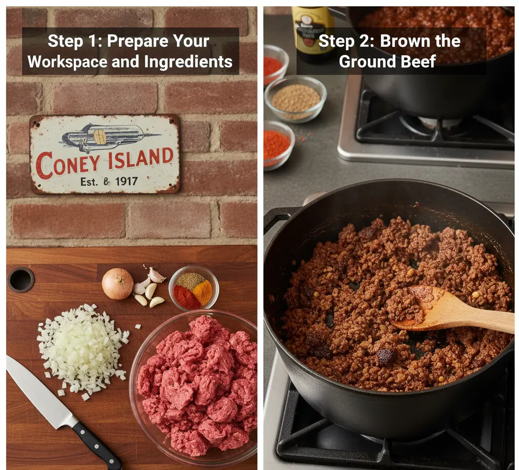 Begin by assembling all ingredients and equipment: a large, heavy-bottomed skillet or Dutch oven (4-quart capacity minimum), wooden spoon or heat-resistant spatula, sharp knife, and cutting board. Finely mince your onion—aim for pieces no larger than ¼ inch, as larger chunks disrupt the smooth texture that defines authentic coney sauce. Mince garlic cloves until nearly paste-like. Measure out all spices into a small bowl, combining them into a unified spice blend that you can add efficiently during cooking.