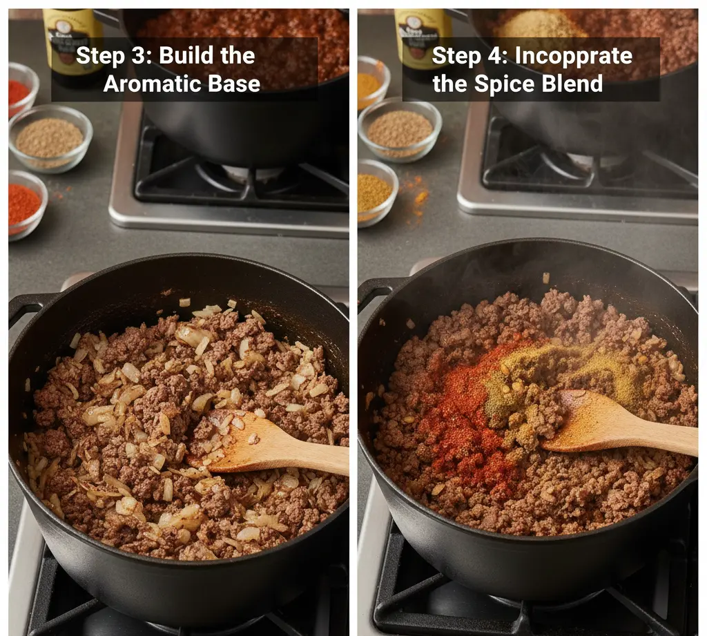 Reduce heat to medium and add your minced onions directly to the browned beef. SautĂ© for 4-5 minutes, stirring frequently, until the onions turn translucent and fragrant. The residual heat and moisture from the onions will help deglaze any browned bits stuck to the pan bottom—don’t let these go to waste, as they’re packed with flavor. Add minced garlic and cook for an additional 60 seconds, stirring constantly to prevent burning (burnt garlic creates bitter notes that will permeate the entire sauce).
