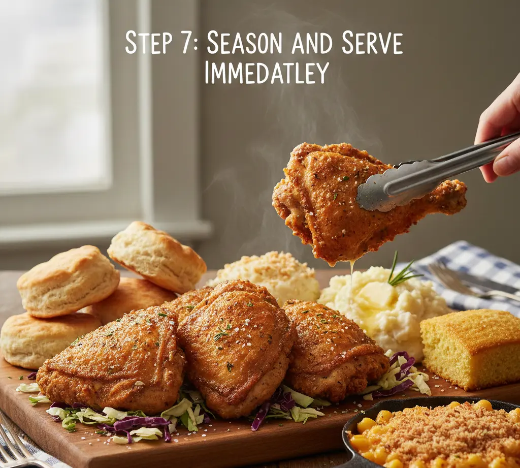 While the chicken is still hot, sprinkle it lightly with additional kosher salt or your favorite seasoning blend. The heat helps the seasonings adhere and penetrate the crispy coating.