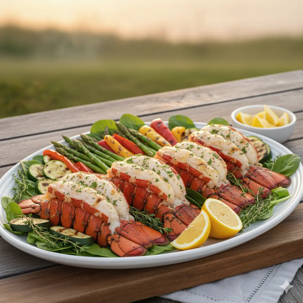 Remove the lobster tails from the grill and transfer to a serving platter. Let them rest for 2 minutes before serving—this brief pause allows the juices to redistribute throughout the meat, ensuring maximum moisture in every bite.