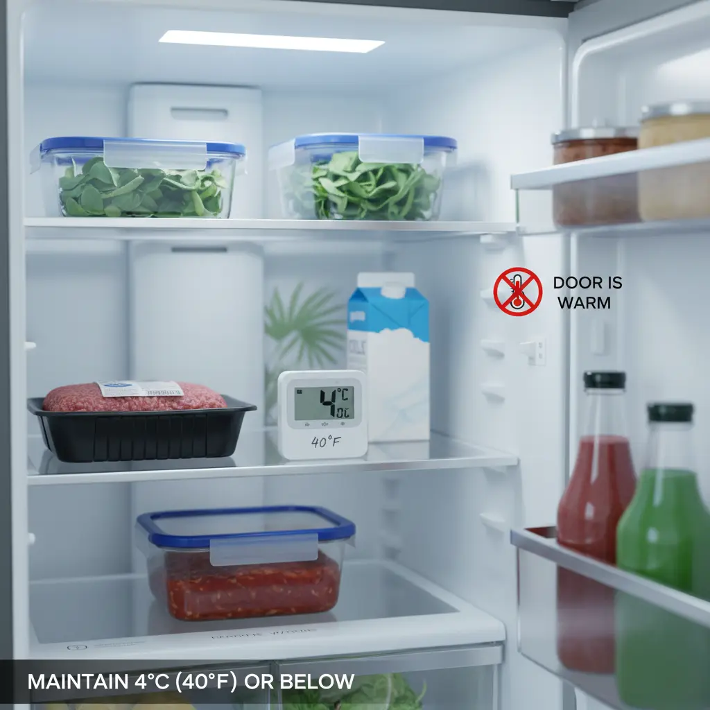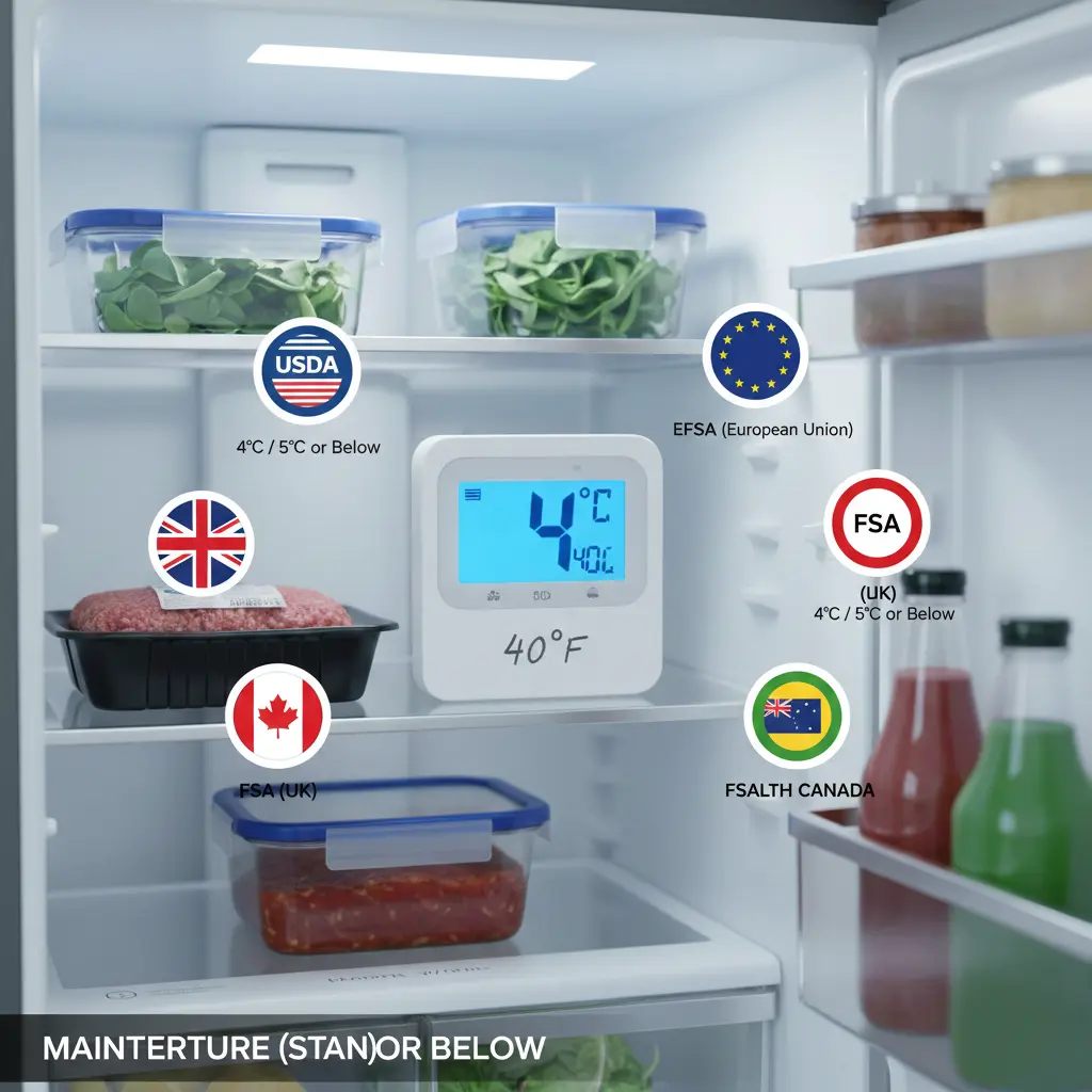 Your refrigerator must maintain 40°F (4°C) or below. In regions using Celsius (Europe, Asia, Africa, Australia), aim for 4°C or lower. Consider that: