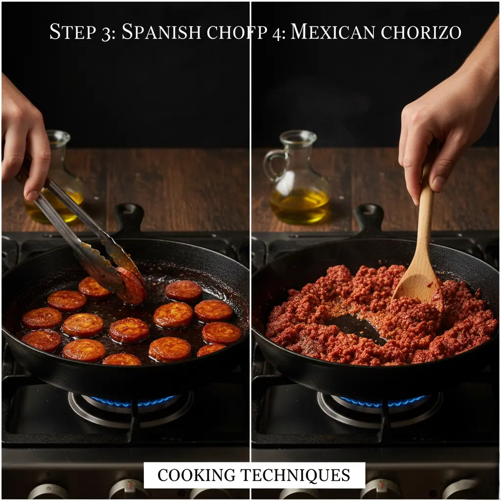Before you begin cooking, identify whether you have Spanish or Mexican chorizo—this single distinction determines your entire cooking approach.