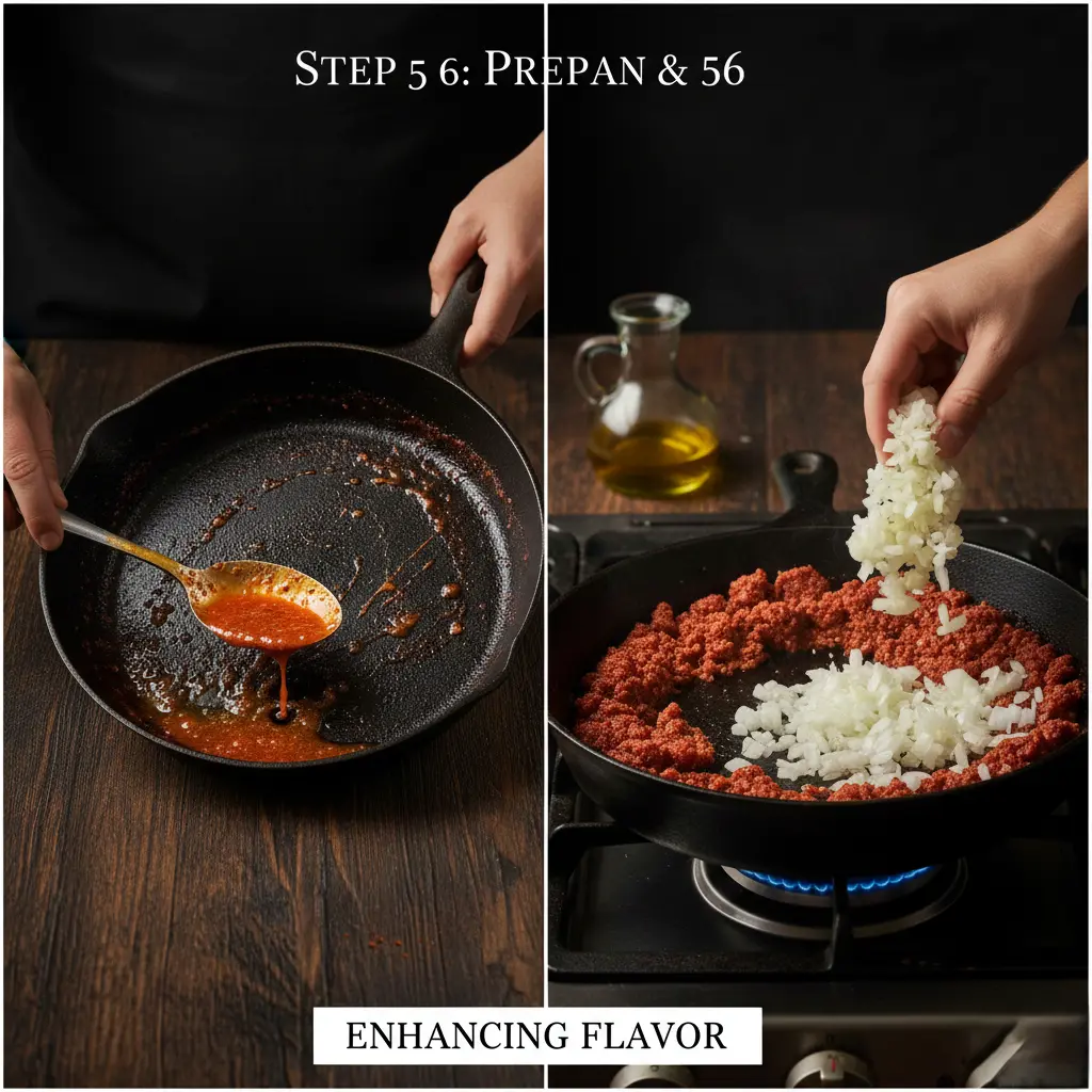 Temperature Check: The pan is ready when a drop of water sizzles and evaporates within 2 seconds. This indicates a surface temperature around 350°F (175°C)—the sweet spot for developing the Maillard reaction without burning the paprika’s delicate pigments.