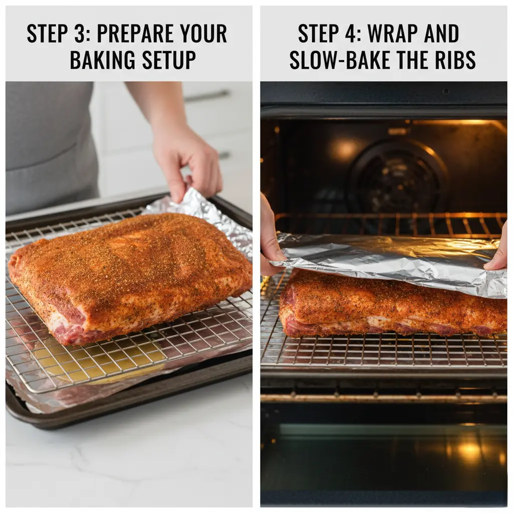 Preheat your oven to 275Β°F (135Β°C). This low temperature is critical for achieving tender, slow-cooked rib perfection. While the oven heats, line a large rimmed baking sheet with aluminum foil β two layers for easy cleanup. Place a wire rack over the baking sheet if you have one (this elevates the ribs and promotes even heat circulation on all sides).