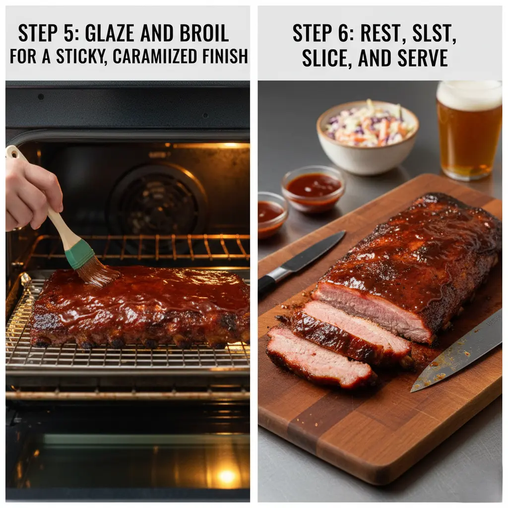 Once the ribs are done slow-baking, carefully remove the foil tent. Drain any accumulated liquid from the pan (you can save this for a delicious sauce or discard it). Brush a generous layer of your BBQ glaze over the top surface of the ribs. Switch your oven to the broiler setting on high and place the ribs under the broiler for 4-6 minutes, watching carefully to prevent burning. You want a gorgeous, bubbly, lacquered surface with slight char marks at the tips of the bones.