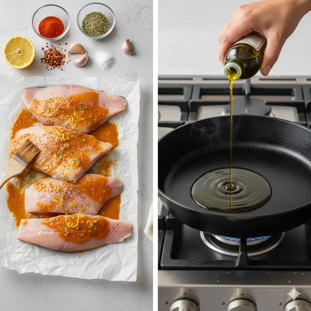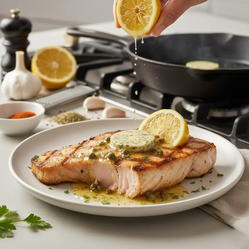 Pat the steaks completely dry with paper towels. This is non-negotiable: moisture is the enemy of a beautiful sear. In a small bowl, whisk together the olive oil, minced garlic, lemon zest, smoked paprika, oregano, red pepper flakes, salt, and black pepper. Brush this marinade generously on both sides of each steak. If time allows, let the fish marinate for 15β30 minutes at room temperature, or up to 2 hours covered in the refrigerator.