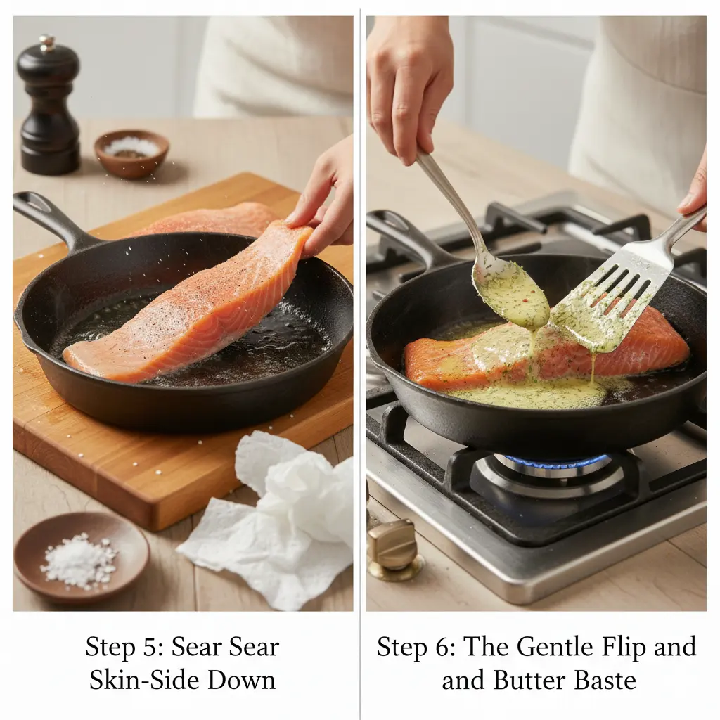 The Science Behind It: Moisture is the enemy of crispy skin. By removing surface moisture, you allow the skin to achieve that restaurant-quality crackle that makes this steelhead trout recipe so irresistible. Data shows that properly dried fish skin crisps up to 85% better than wet skin.